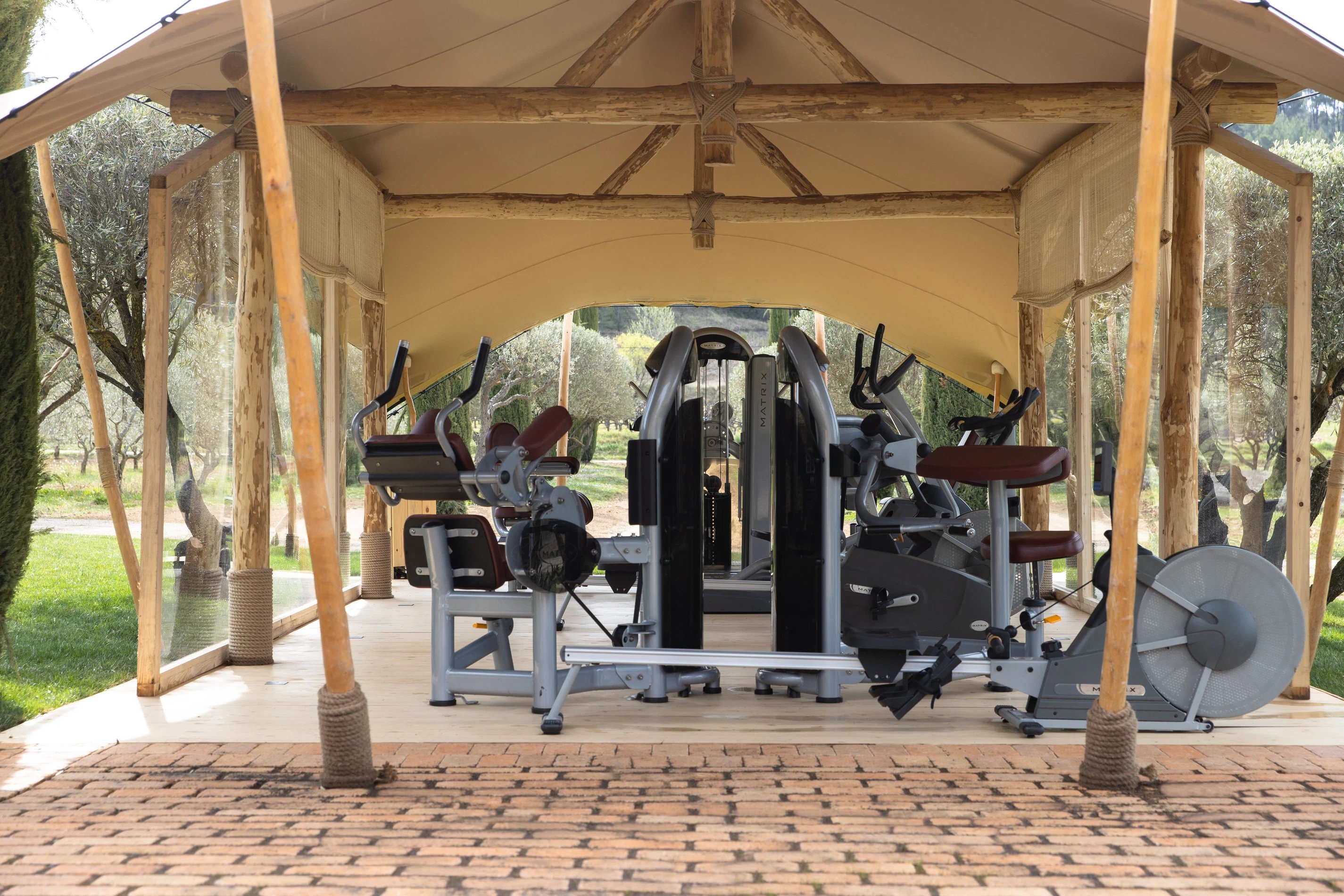 Des installations sur mesure pour le sportifs qui souhaitent continuer à s'entretenir aux Andéols. Une salle fitness équipée ainsi qu'un court de tennis à disposition de nos clients. Profitez de l'air pur du domaine pour pratiquer votre sport favori en pleine nature !