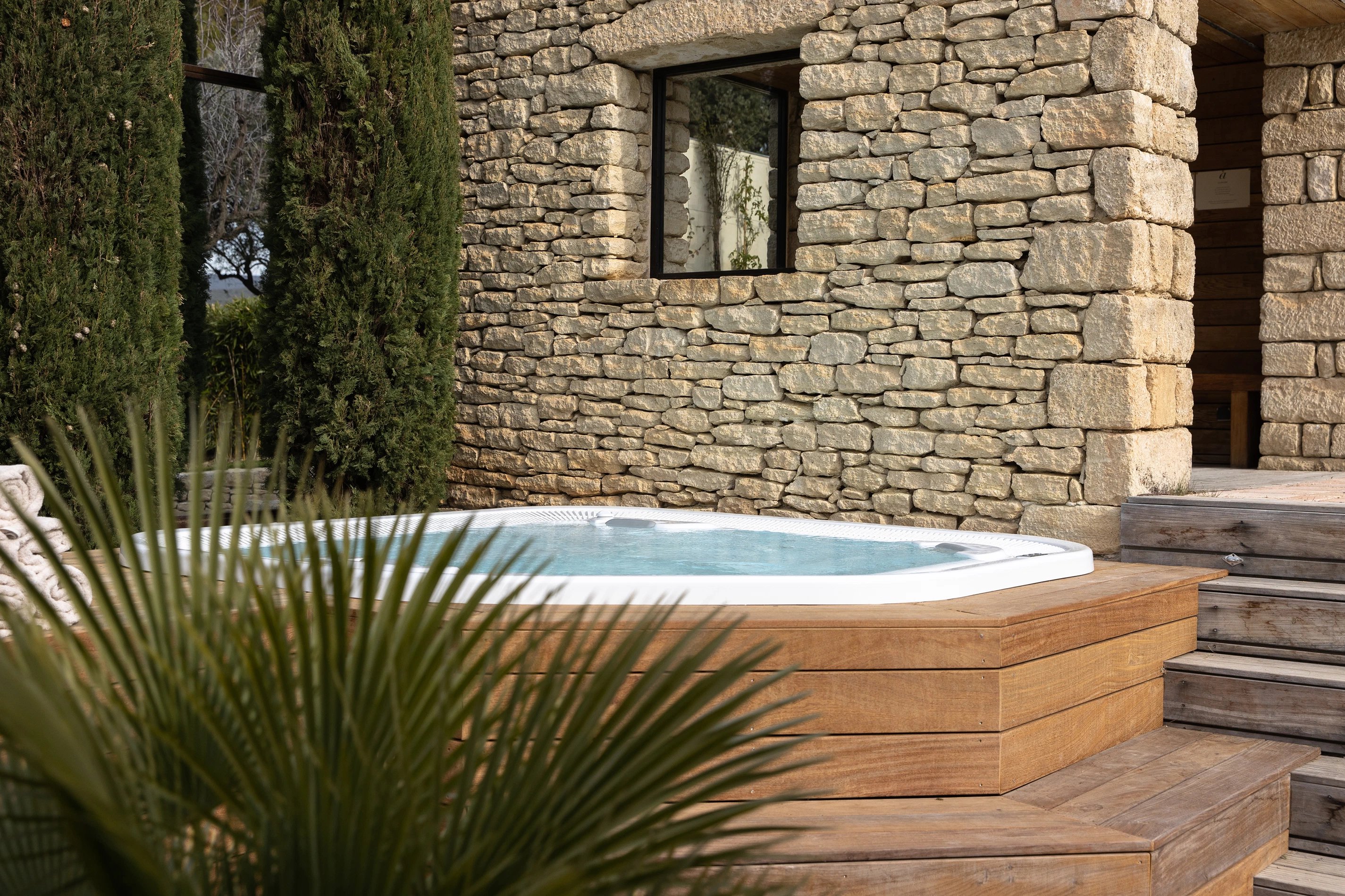 Piscine, bassin de nage, jacuzzi, hammam, espaces de détente, espaces de lecture, etc… Tout est réuni pour que chacun puisse, à tout moment, profiter de l'endroit et du moment avec sérénité.