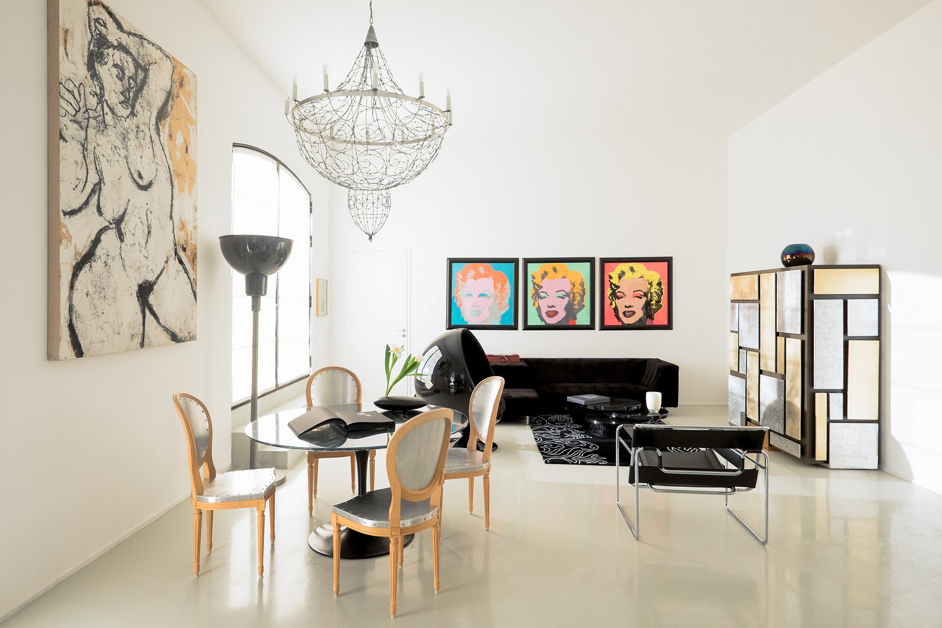 C’est la maison la plus « design », la plus moderne, la plus libre. Une sublime salle de bains, un canapé magique de Ron Arad, des chaises de Pucci deRossi, une magnifique toile de Uru Buru.